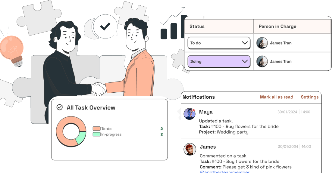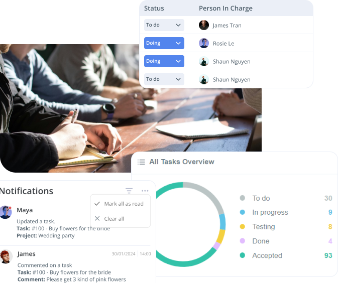 PlanZ nâng cao khả năng làm việc nhóm với tin nhắn thời gian thực, chia sẻ tài liệu và thông báo, giúp tất cả các thành viên trong nhóm luôn được kết nối.